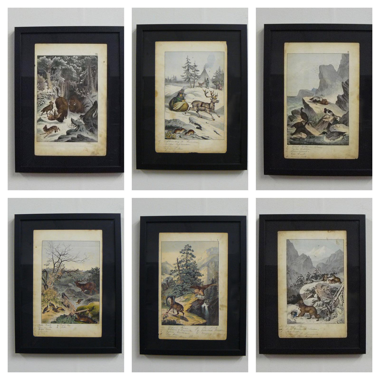 6 Framed Animal Coloured Pictures Plates C1877 Sketches From Nature - N Europe & Lapland