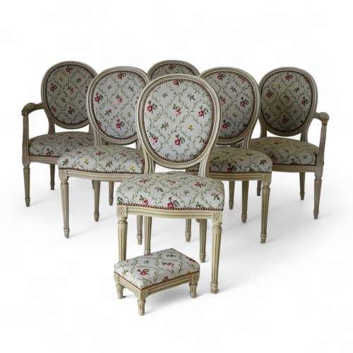 6 French 1950s Salon Chairs Original Needlepoint Upholstery (1 of 16)
