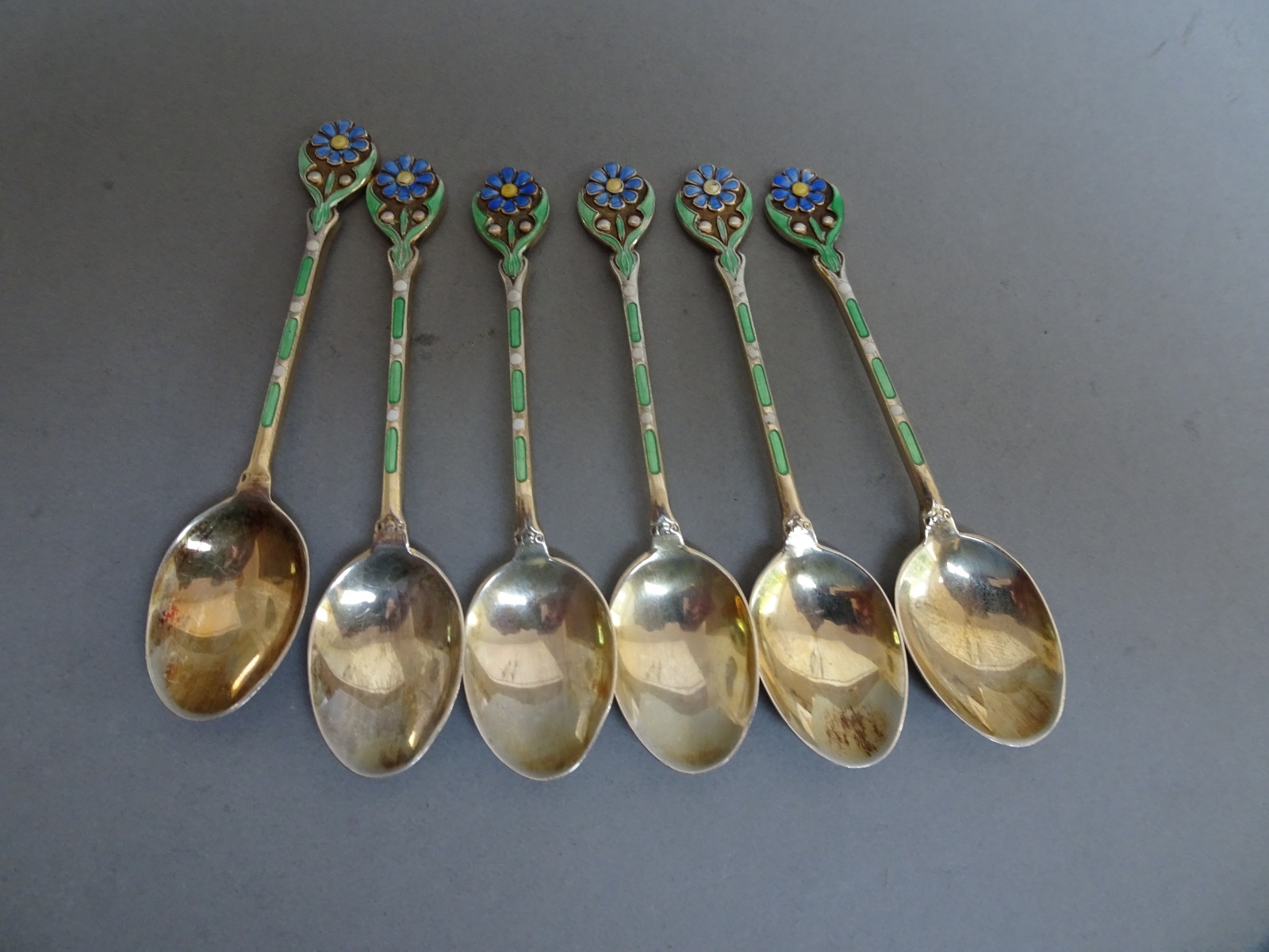 6 George VI Art Deco Silver & Enamel Teaspoons. Birmingham 1936, Turner & Simpson. England