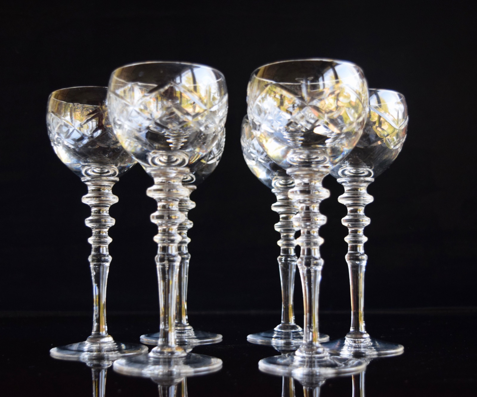 6 Hock or Rose Glasses Quadruple Knop Stems c.1935