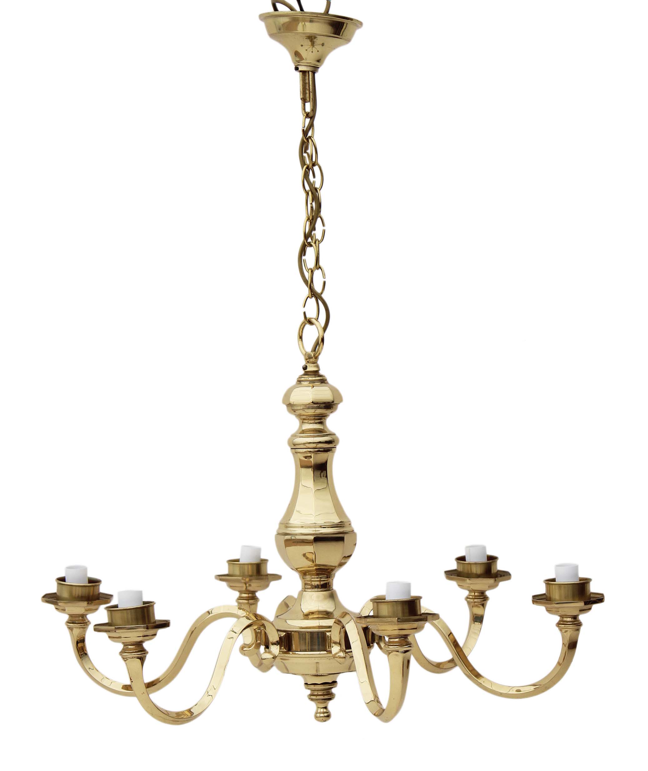 6 Lamp Brass Art Deco Chandelier FREE DELIVERY