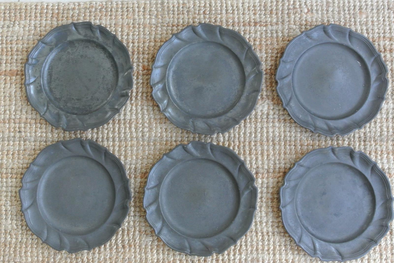6 Matching 18th Century Continental Pewter Plates Sadware