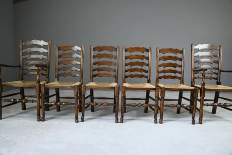 6 Oak & Rush Country Style Ladderback Dining Chairs (1 of 12)