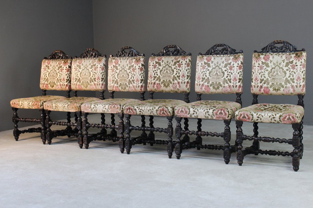 6 Victorian Carved Oak Upholstered Dining Chairs