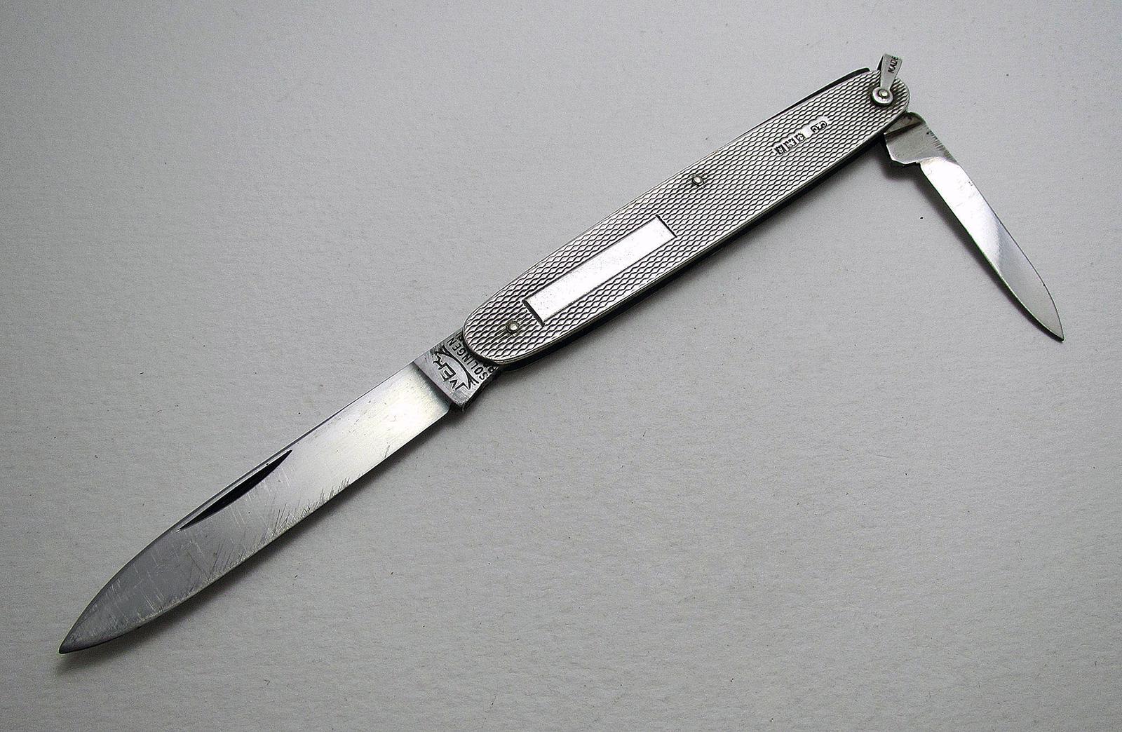 60s Vintage Sterling Silver Stainless Steel English Pocket Fruit Pen Knife Folding Penknife. Solingen Rostfrei.