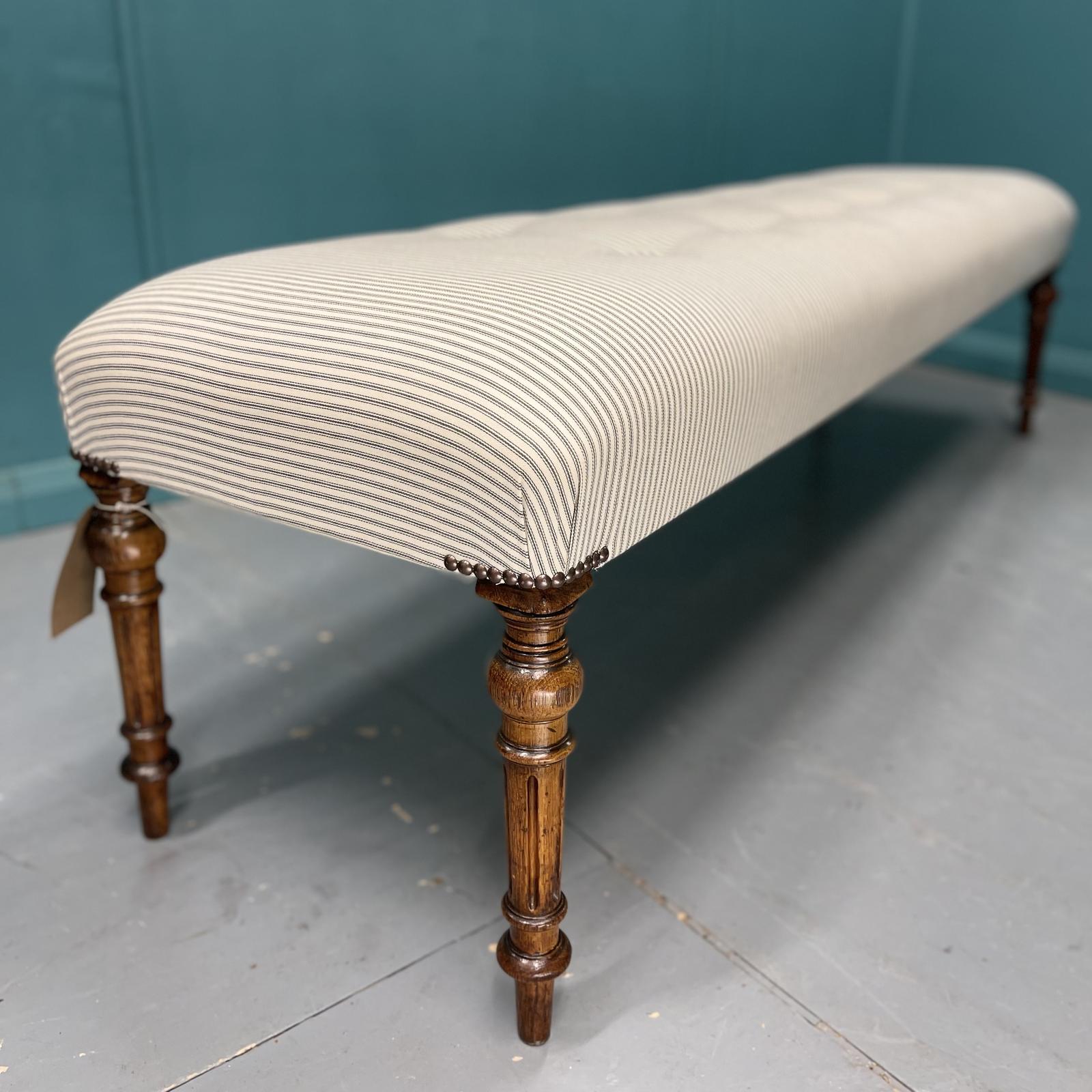 6ft Newly Upholstered Long Stool in Ticking Stripes