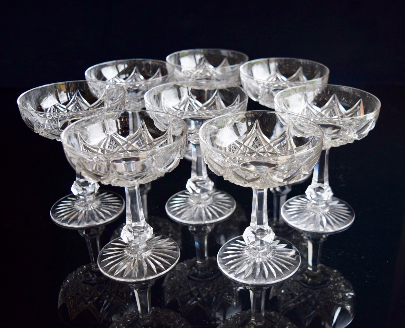 8 Baccarat Crystal Colbert Champagne Glasses C.1930