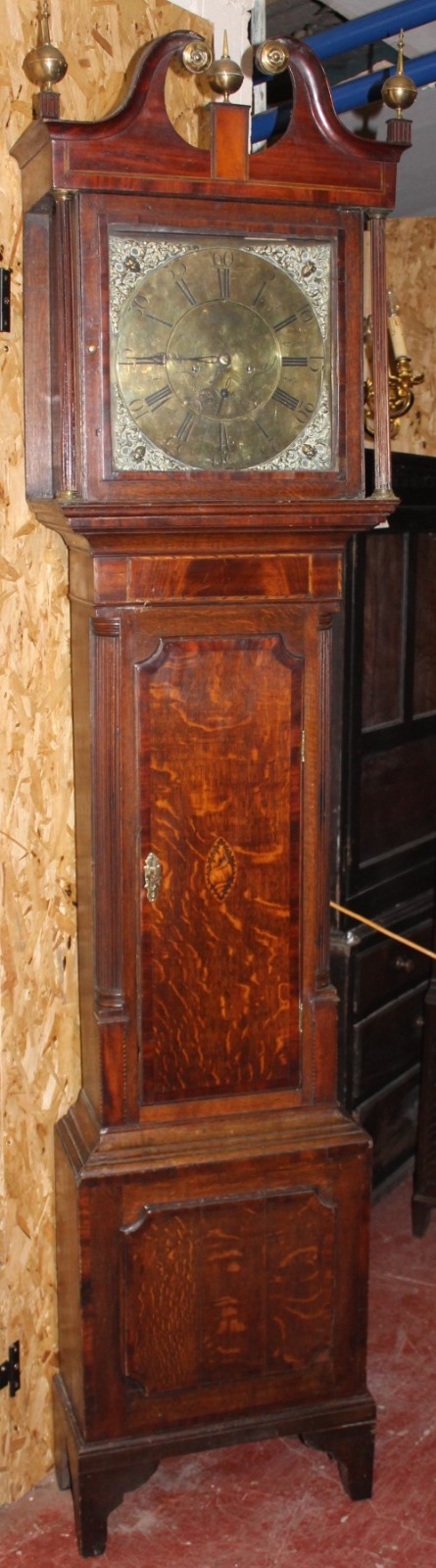 8 Day Brass Faced Oak Grandfather Clock Butterworth from Rochdale c.1750