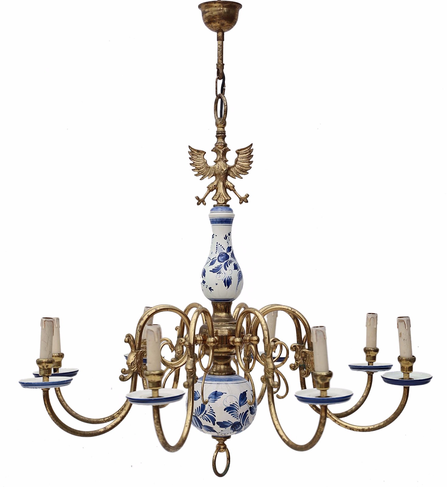 8 Lamp Ceramic Brass Ormolu Flemish Chandelier FREE DELIVERY (1 of 1)