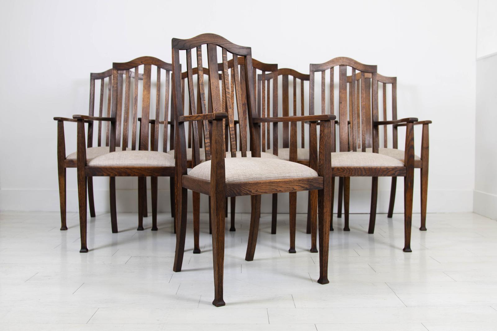 8 Oak Arts & Crafts Carver Dining Armchairs New Upholstery