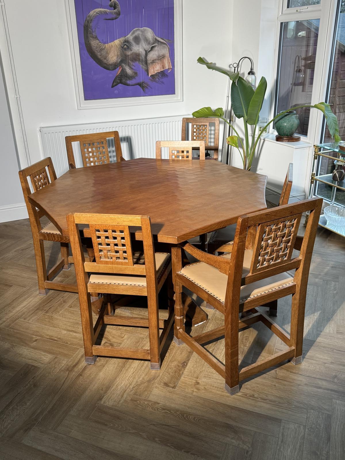 8 Seater Mouseman Table & 6 Chairs (1 of 8)