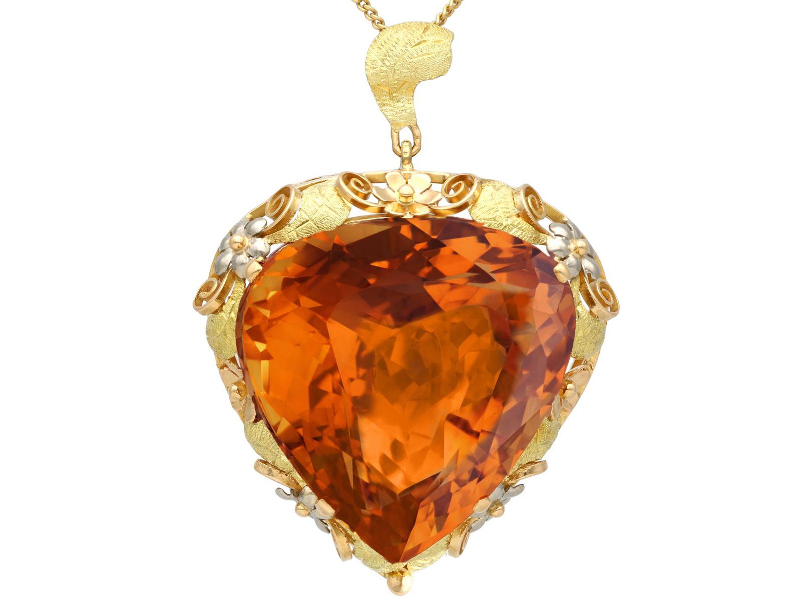 81.94ct Citrine & 15ct Gold Pendant - Antique c.1910 (1 of 9)