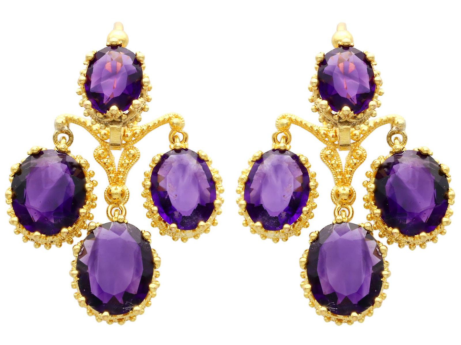 9.15ct Amethyst & 21ct Yellow Gold Chandelier Earrings - Antique c.1895 (1 of 9)