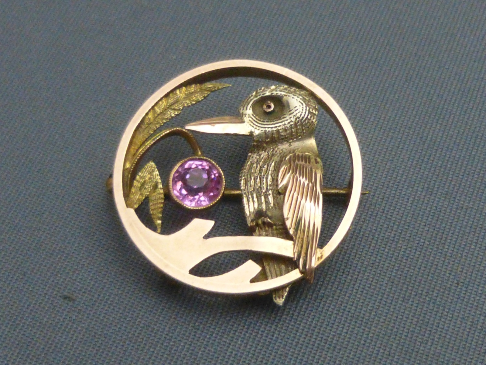 9ct 3 Colour Gold, Pink Tourmaline Set Kingfisher Brooch