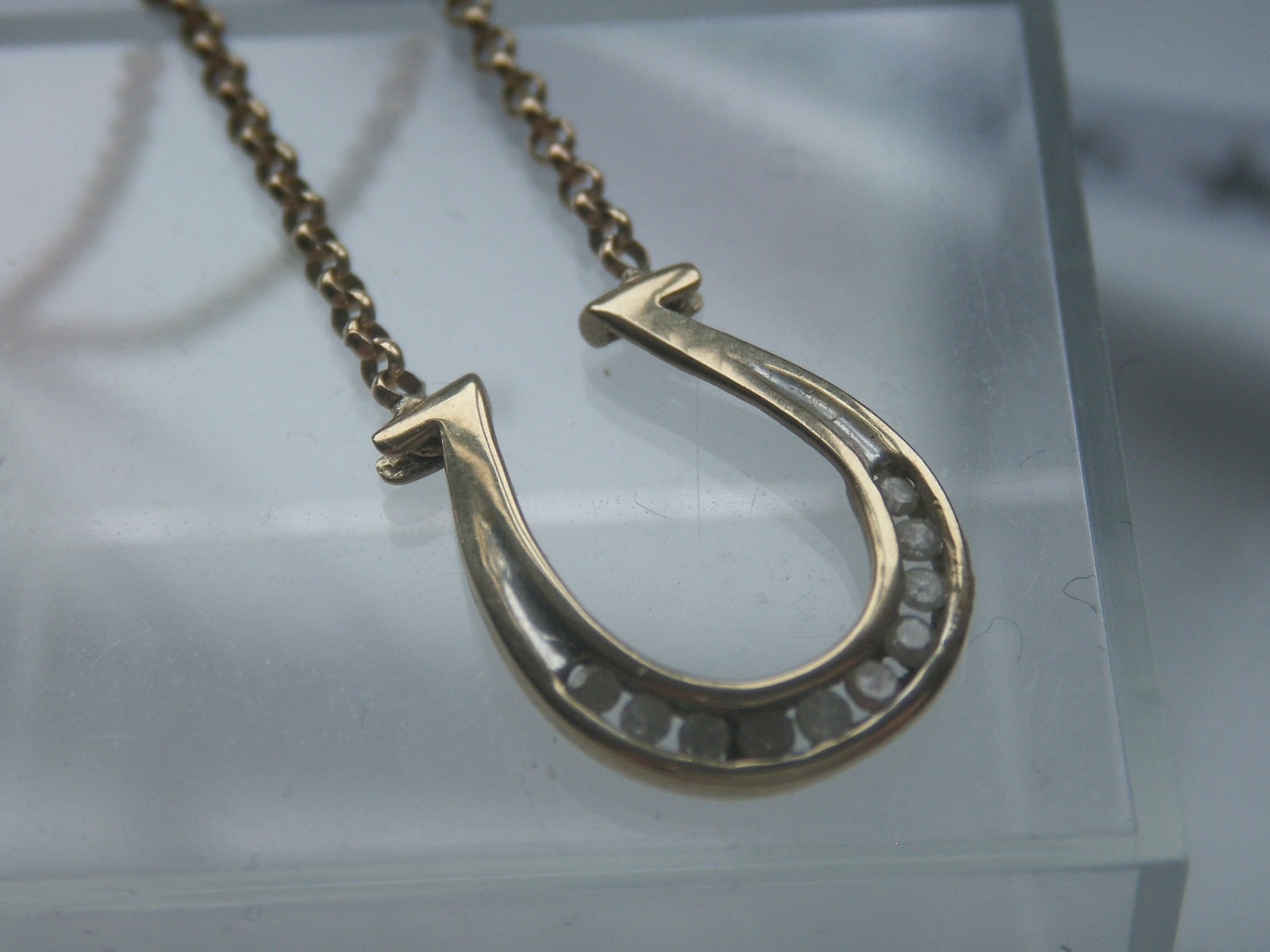 9ct 375 Gold Diamond Set Lucky Horse Shoe Necklace