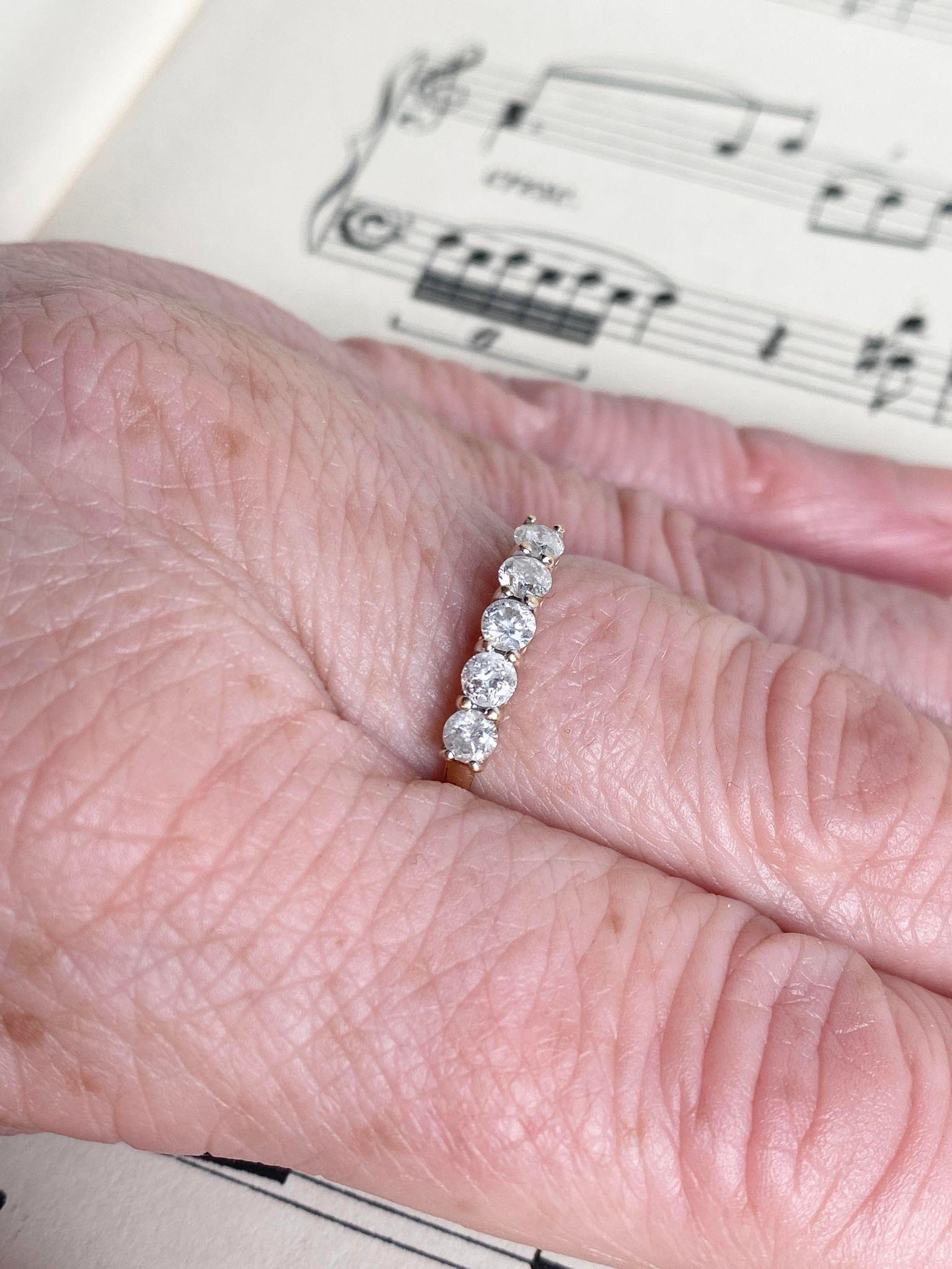 9ct Gold & 5 Stone Diamond Ring Size P 1/2