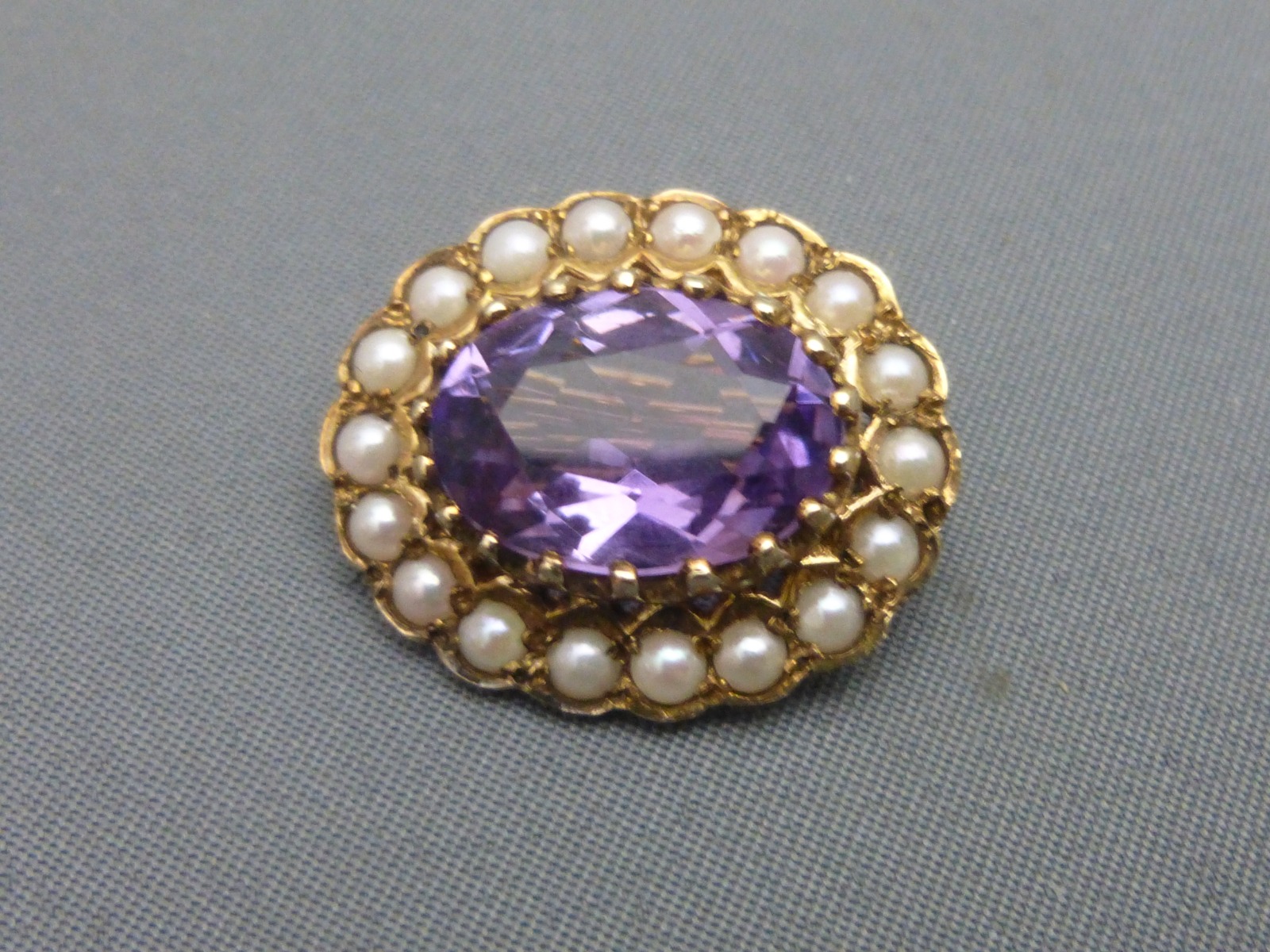 9ct Gold Amethyst & Pearl Brooch