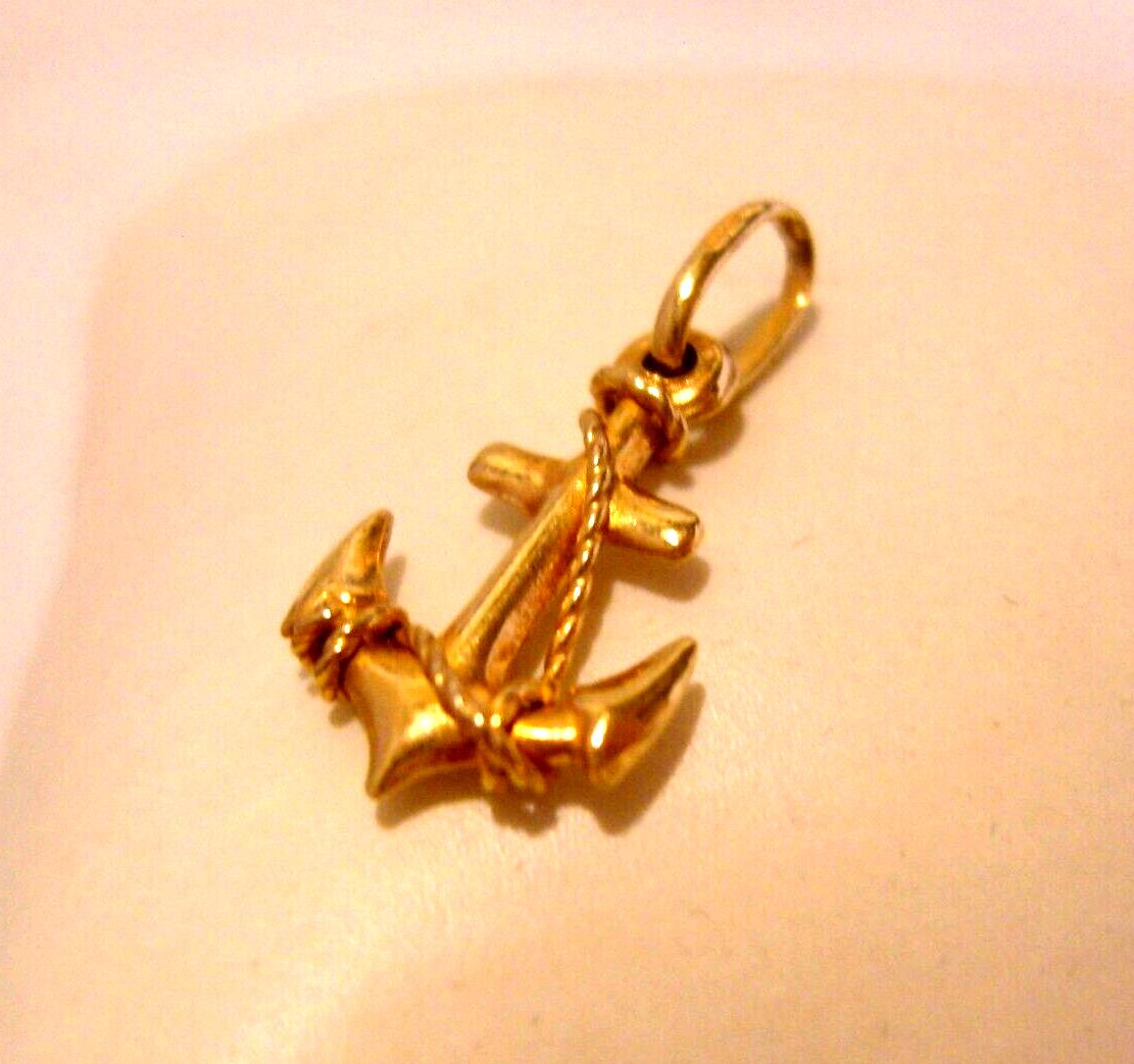 9ct Gold Anchor Vintage Nautical Pendant or Bracelet Charm 375 Yellow Gold