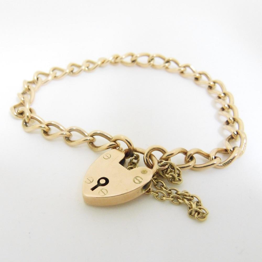 9ct Gold Charm Bracelet with Heart Clasp Chester 1924