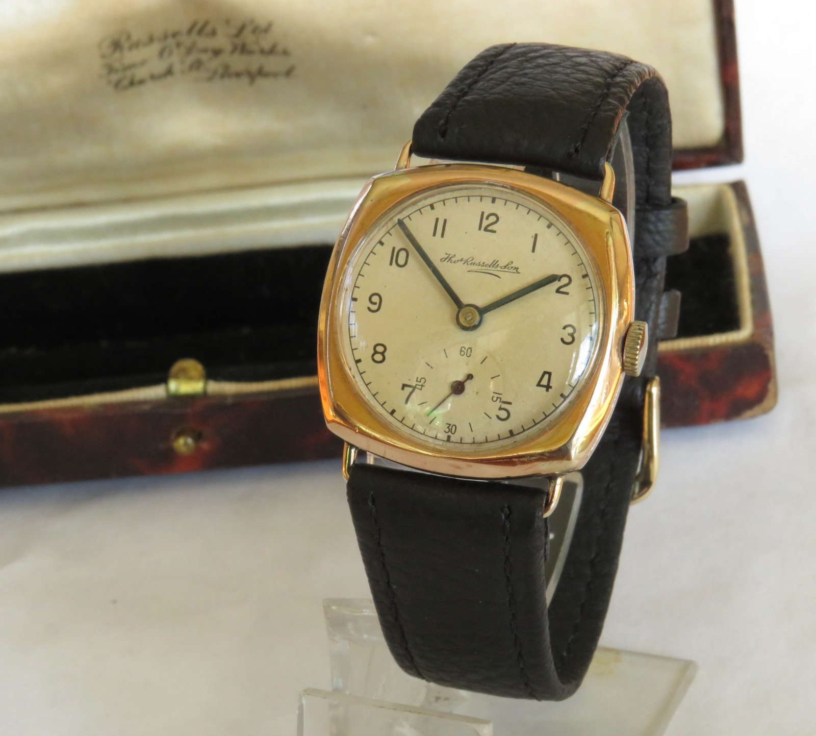 9ct Gold Cushion Cased Wristwatch from Thomas Russell, 1944