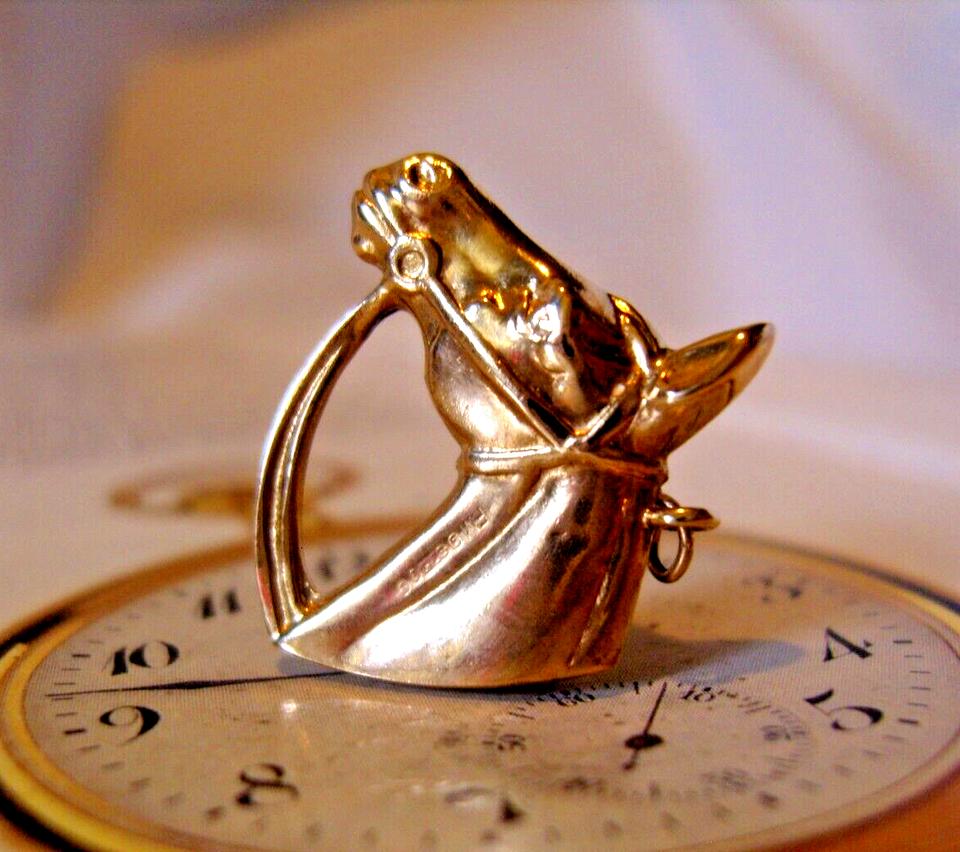 9ct Gold Horse Head Pendant 1977 Vintage Two Dimensional Fob