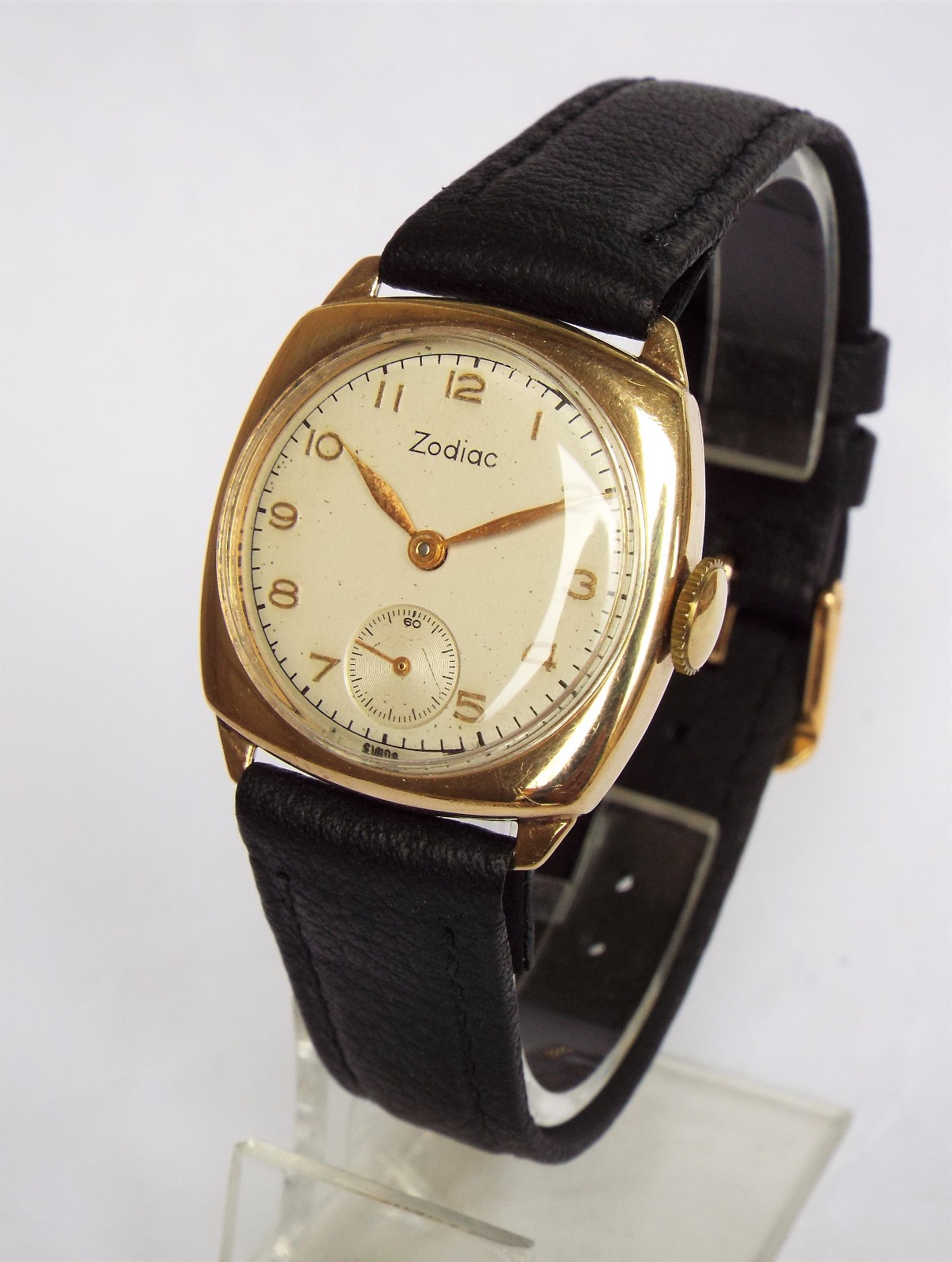 9ct Gold Mid-Size Zodiac Cushion Cased Wrist Watch