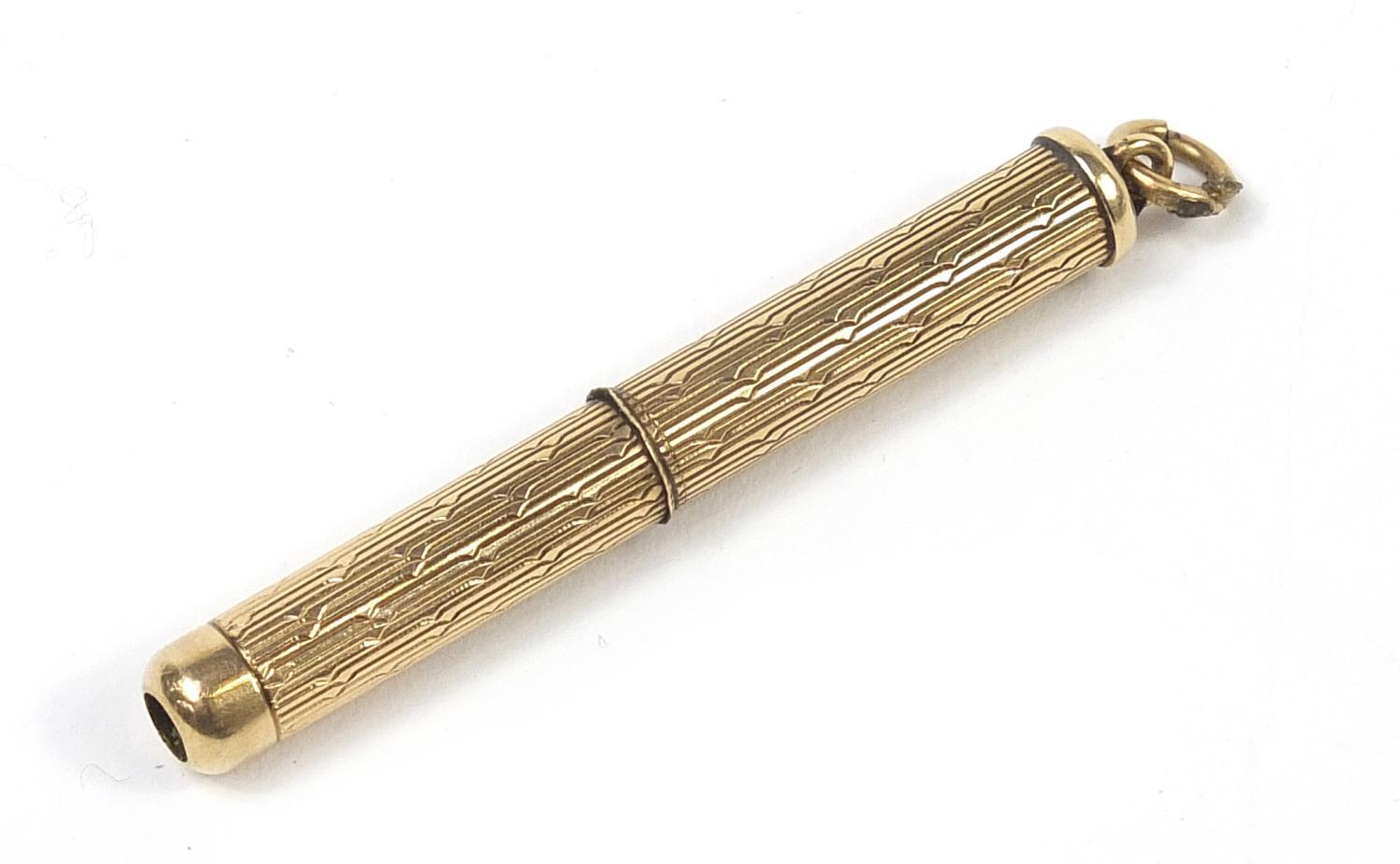 9ct gold propelling toothpick hallmarked V & J Birmingham 1973, 5cm in length, weighing 5.8g
