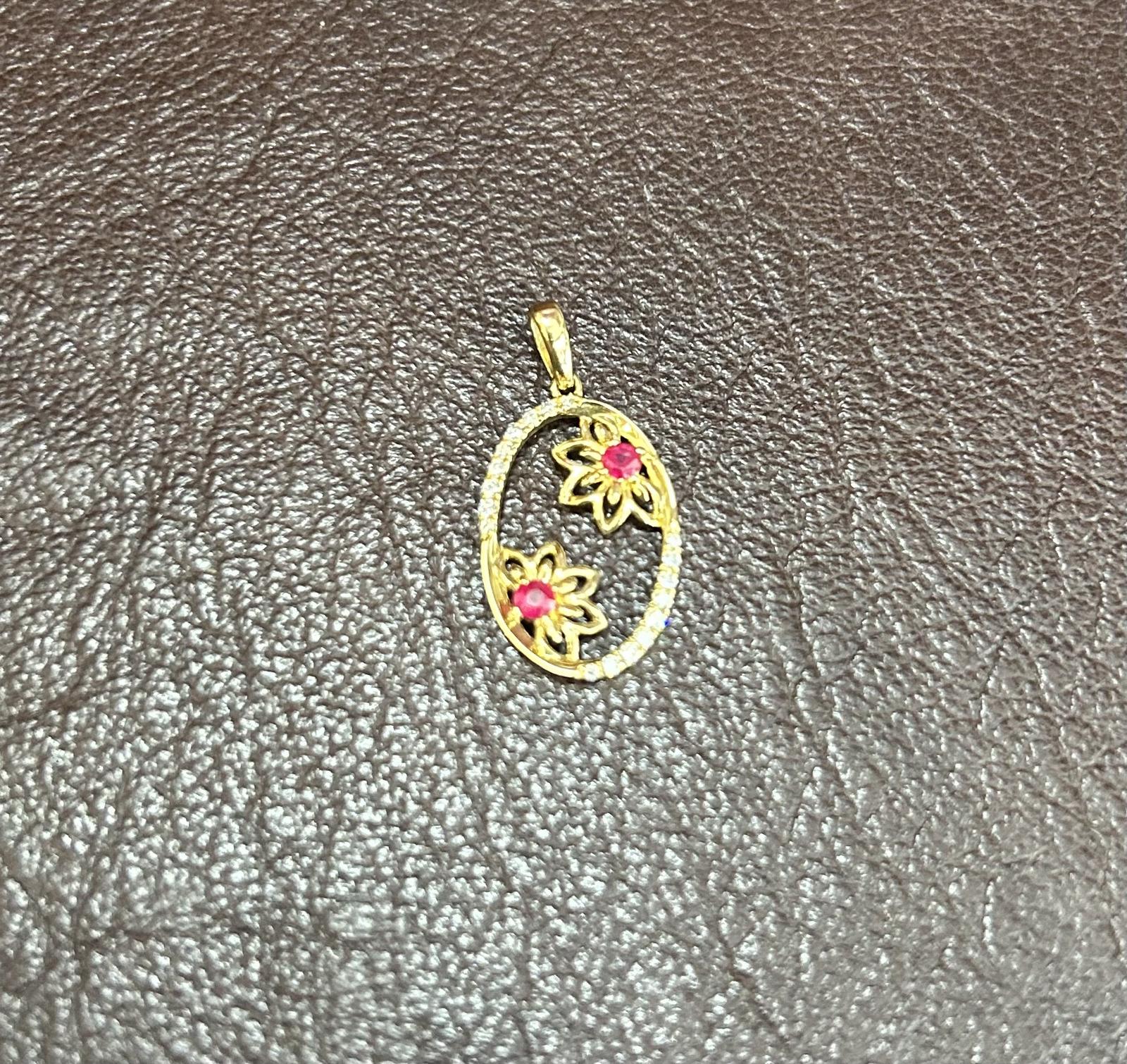 9ct gold ruby and diamond with flowers inside the pendant. 1.1grams.