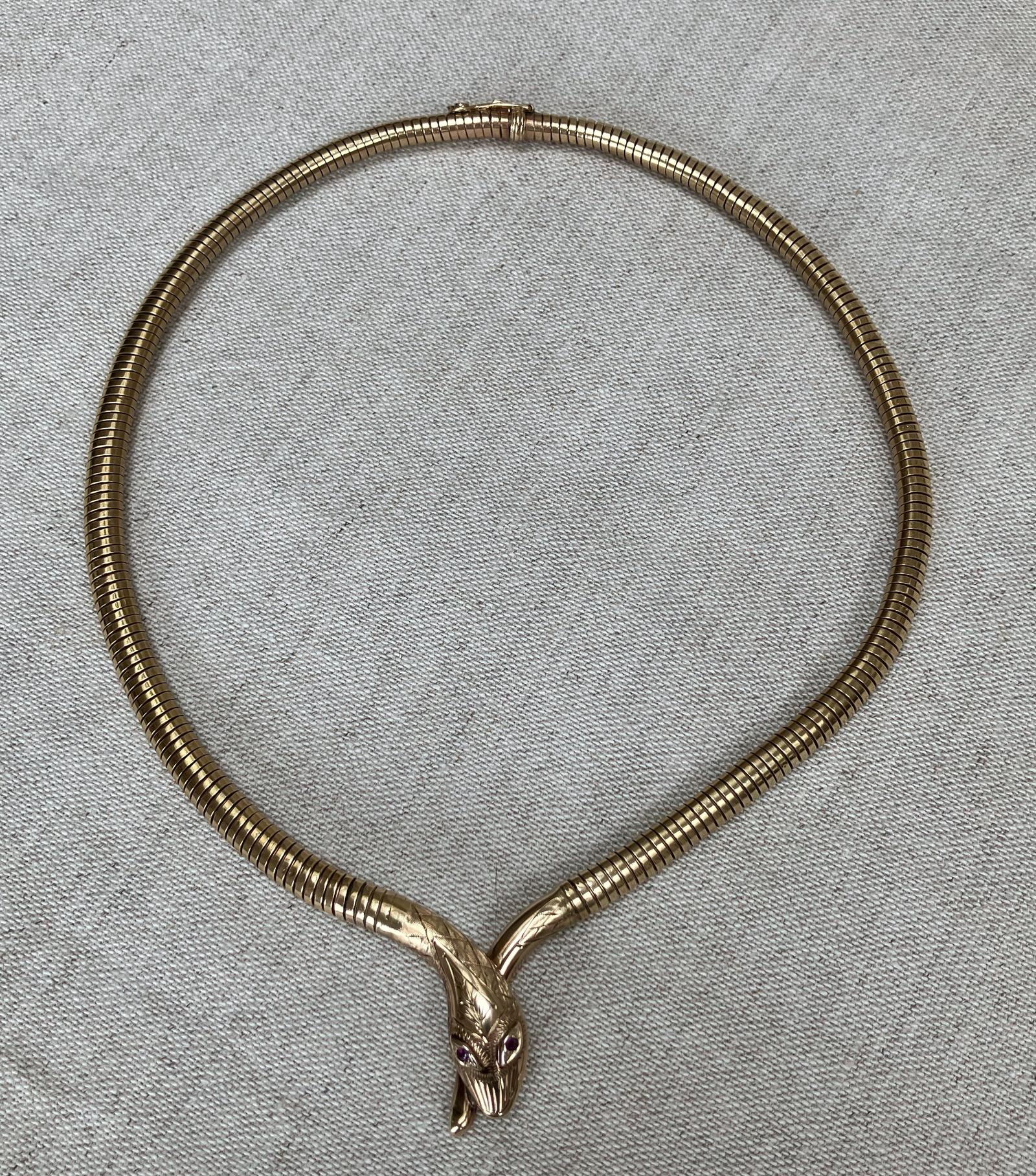 9ct Gold Smith & Pepper Snake Collar Necklace With Ruby Eyes