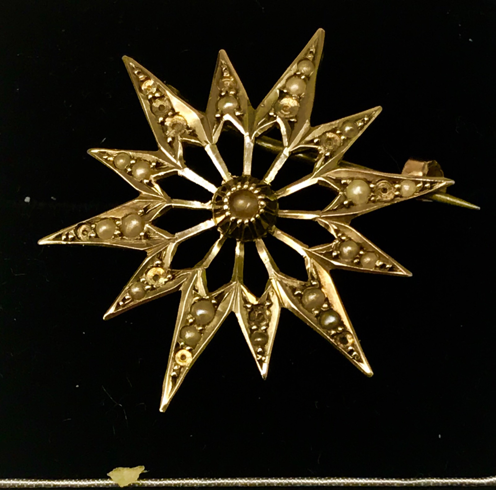 9ct Gold Snowflake Pendant & Brooch with Seed Pearls Birmingham 1913