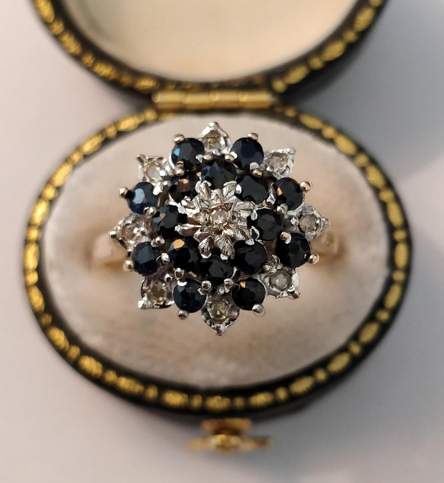 9ct Gold Vintage 1950s Sapphire & Diamond Cluster Ring