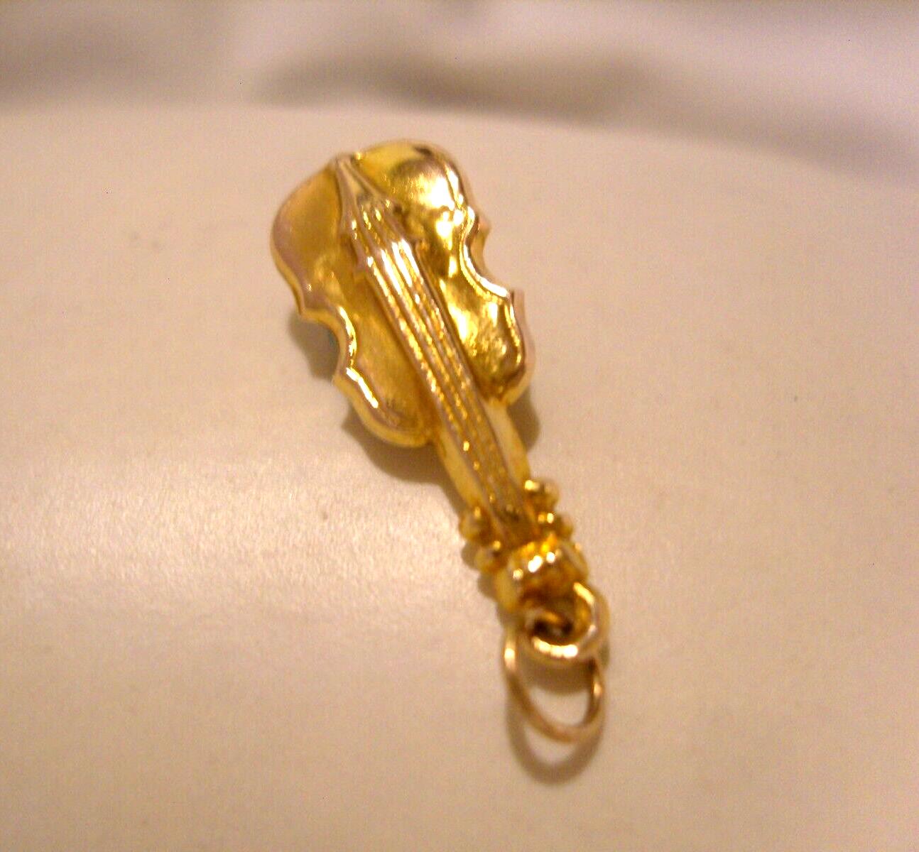 9ct Gold Violin Pendant or Bracelet Charm Vintage 1970s 9 .375 Two Dimensional Fob