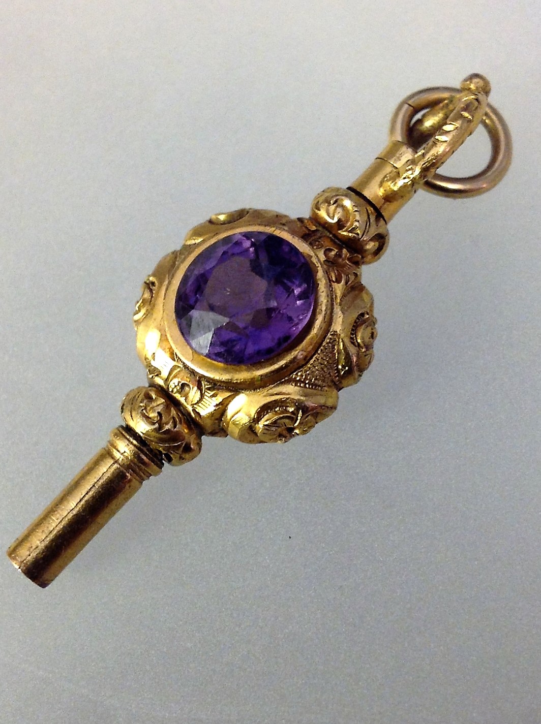 9ct Gold Watch Fob Key Set with Amethyst & Citrine