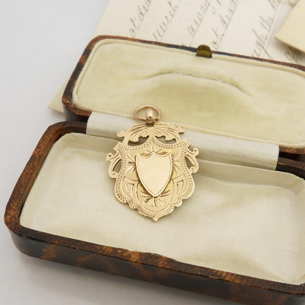 9ct Rose Gold Engraved Fob Hallmarked Birmingham 1914