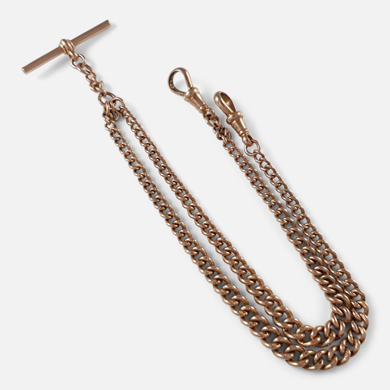 9ct Rose Gold Graduating Double Albert Watch Chain Birmingham 1929 26.8g