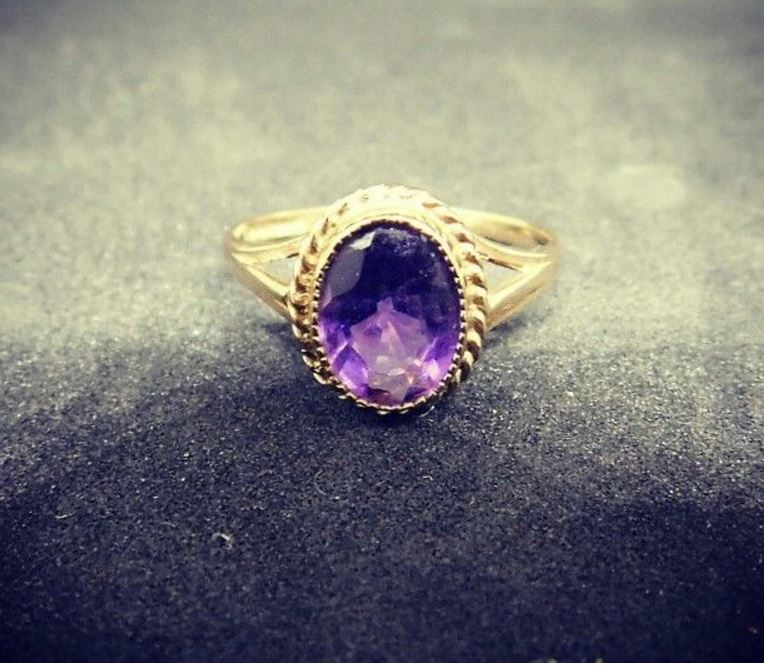 9ct Solid Gold Amethyst Victorian Ring, Hallmarked