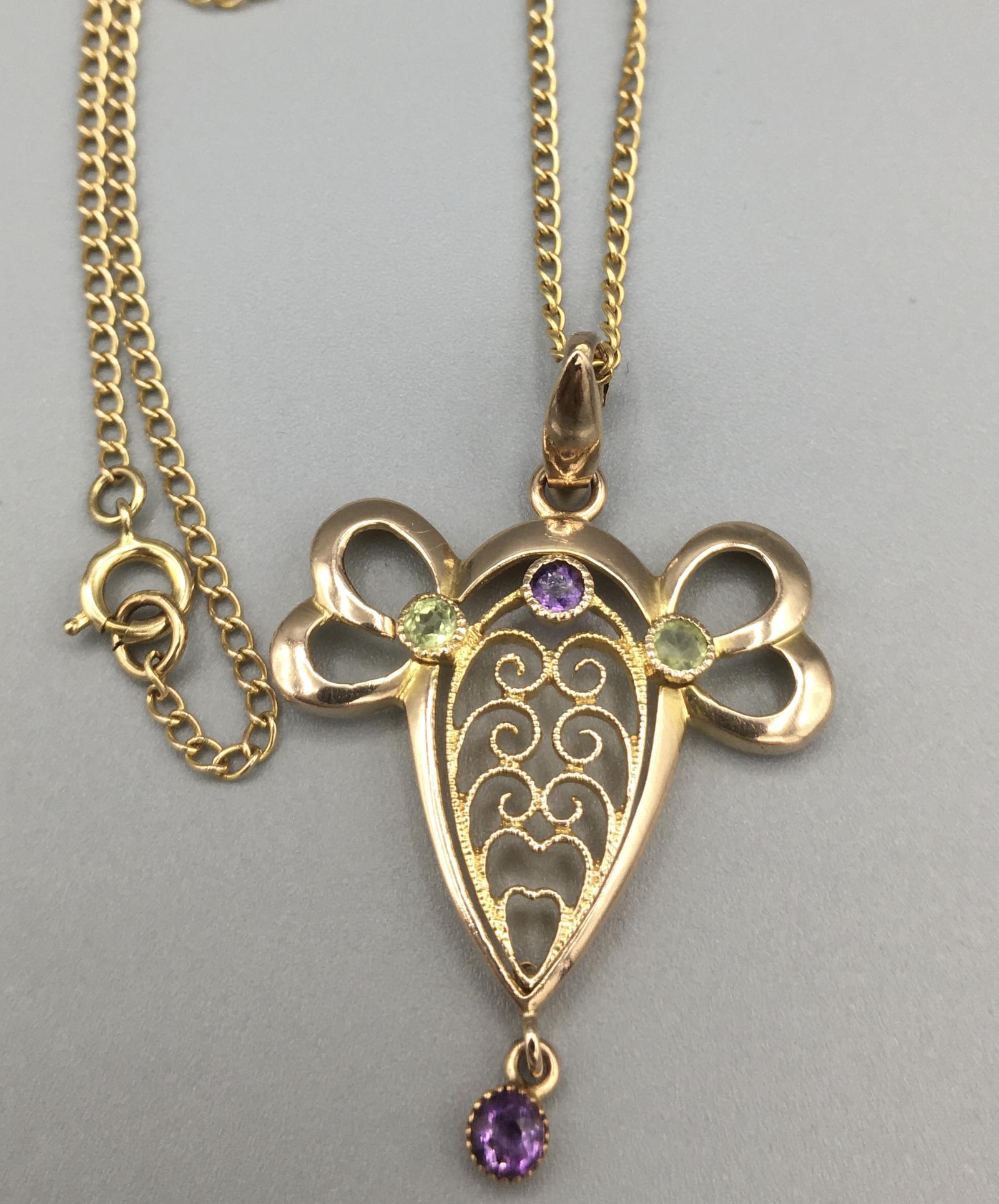 9ct Yellow Gold Amethyst & Peridot Pendant & Chain