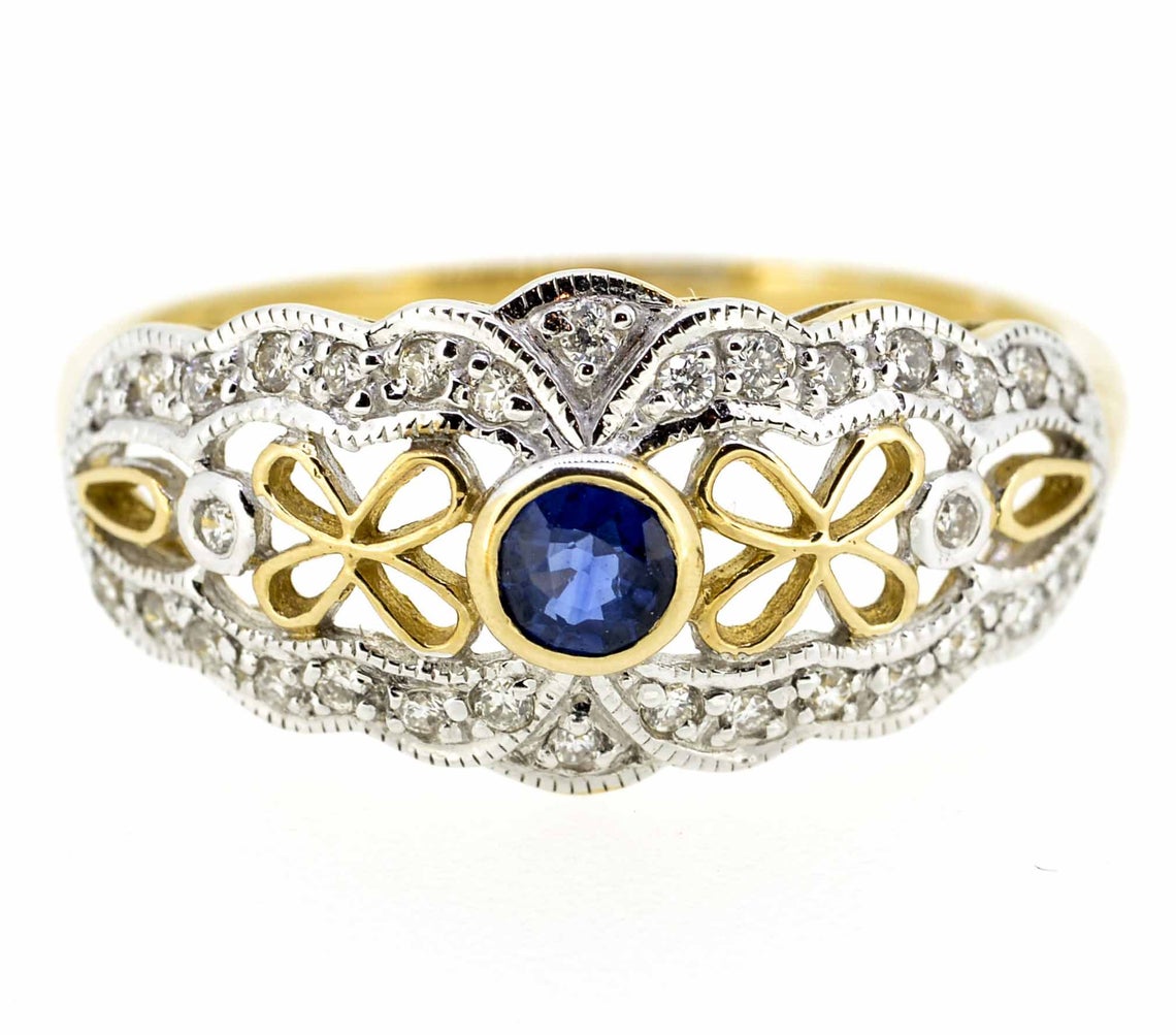 9ct Yellow Gold Antique Style Sapphire & Diamond Ring