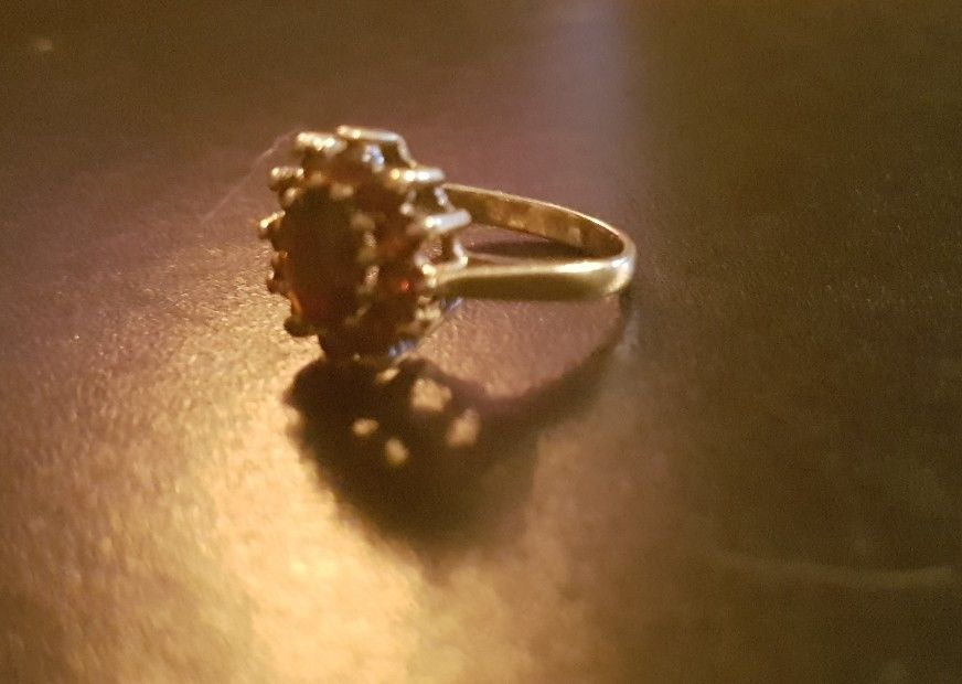 9ct Yellow Gold Natural Garnet Classic Oval Cluster Style Ring Hallmarked