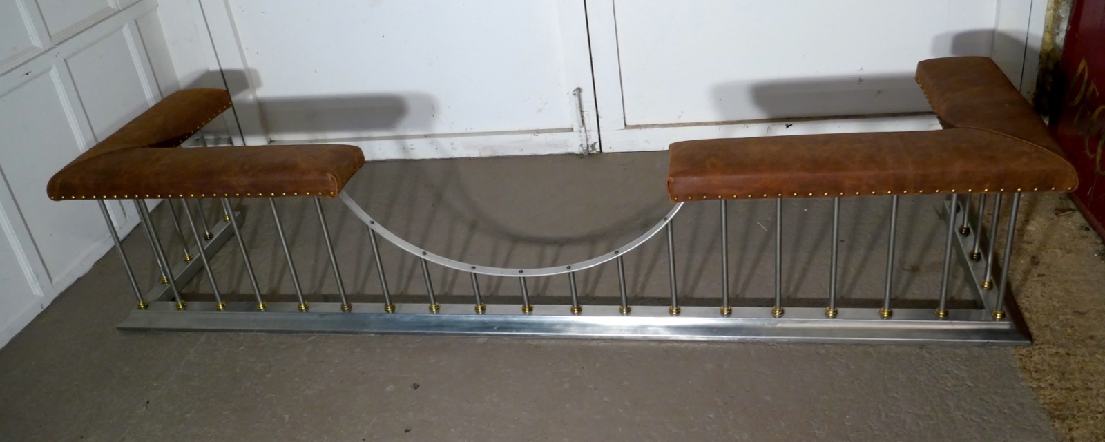 9ft Long Polished Steel & Leather Art Deco Club Fender