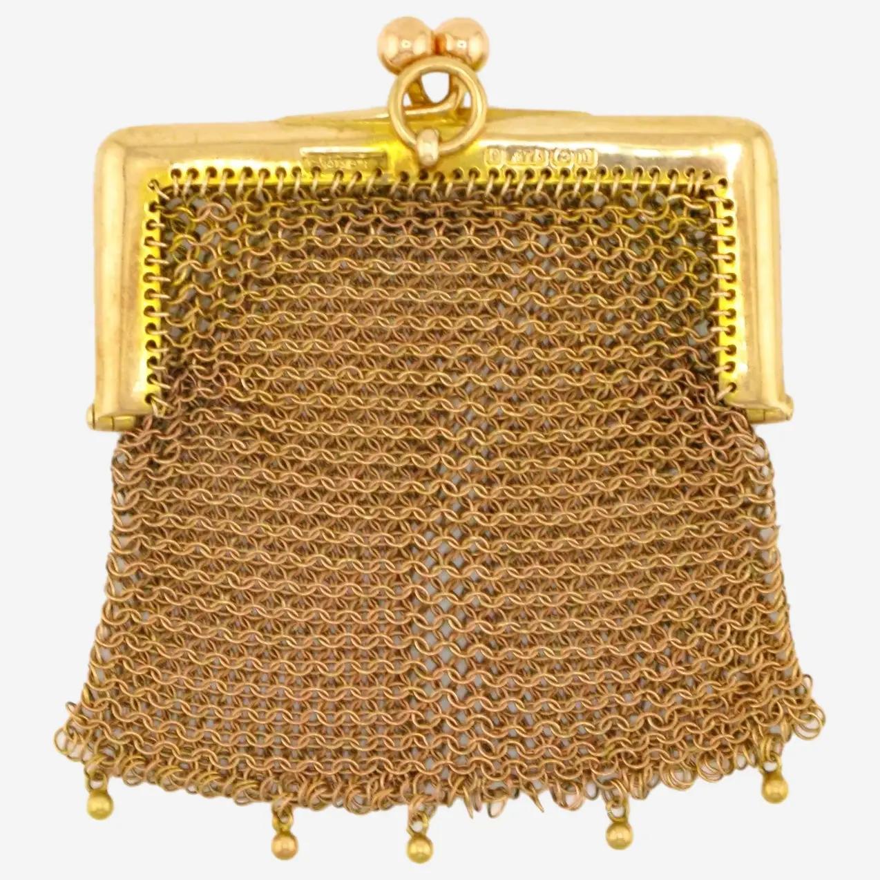 9k Gold Coin / Sovereign Chatelaine Mesh Reticule / Purse