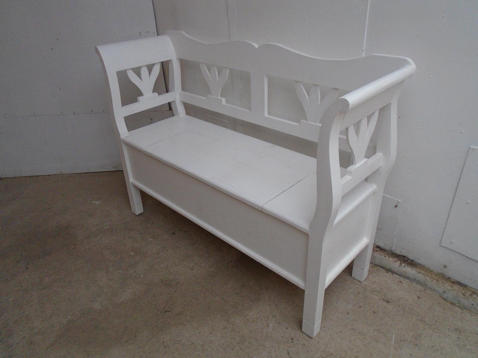 A 1/2 Seater Pine Painted White Box Settle / Hall Bench