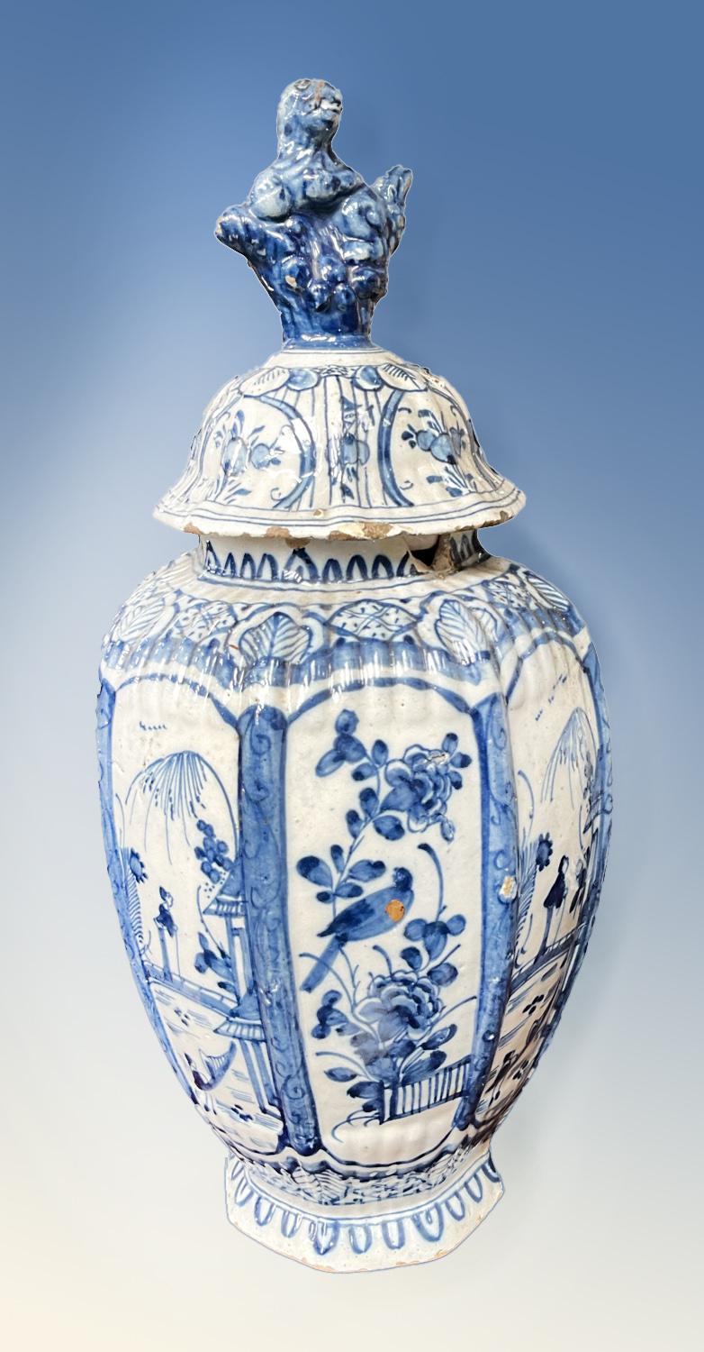 A 17th Century Blue and White Dutch Delft Octagonal Jar and Cover. (1 of 5)