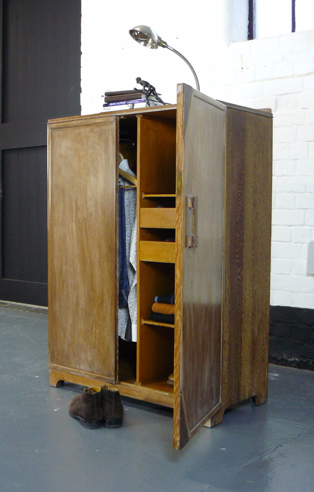 A 1930s Limed Oak Dwarf Wardrobe of Excellent Quality