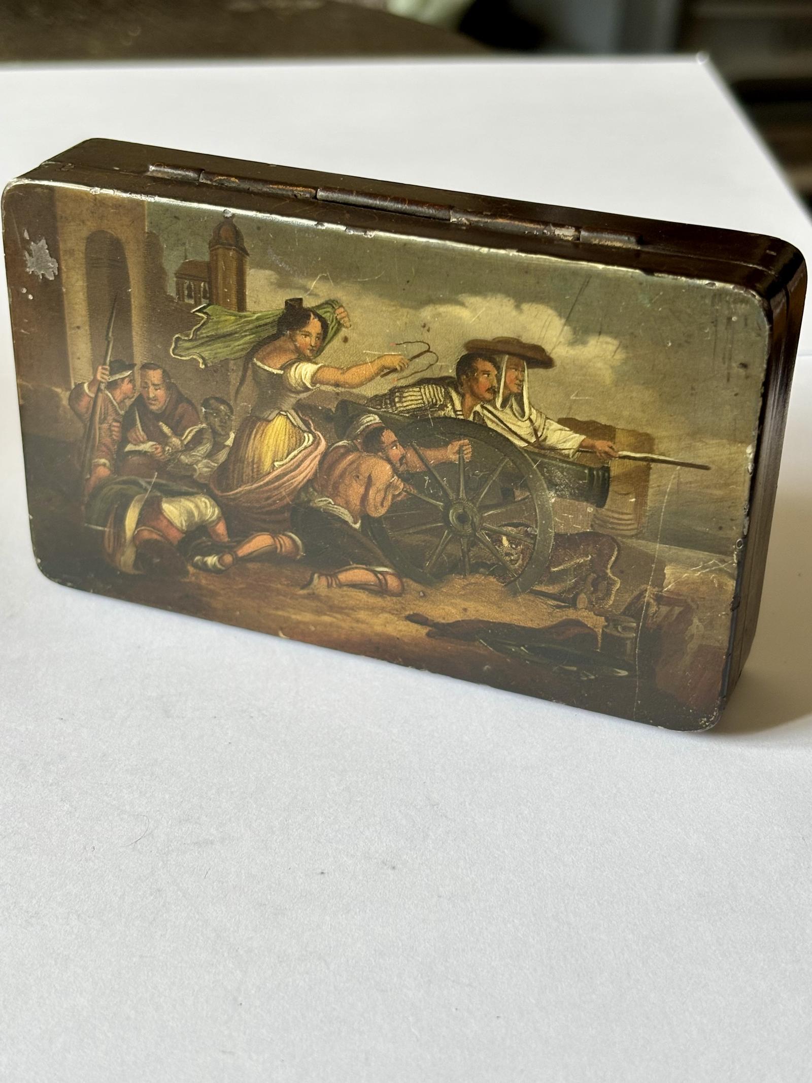 A 19th Century Stobwasser Type Tin Table Snuff Box with a Spanish Battle Scene (1 of 13)