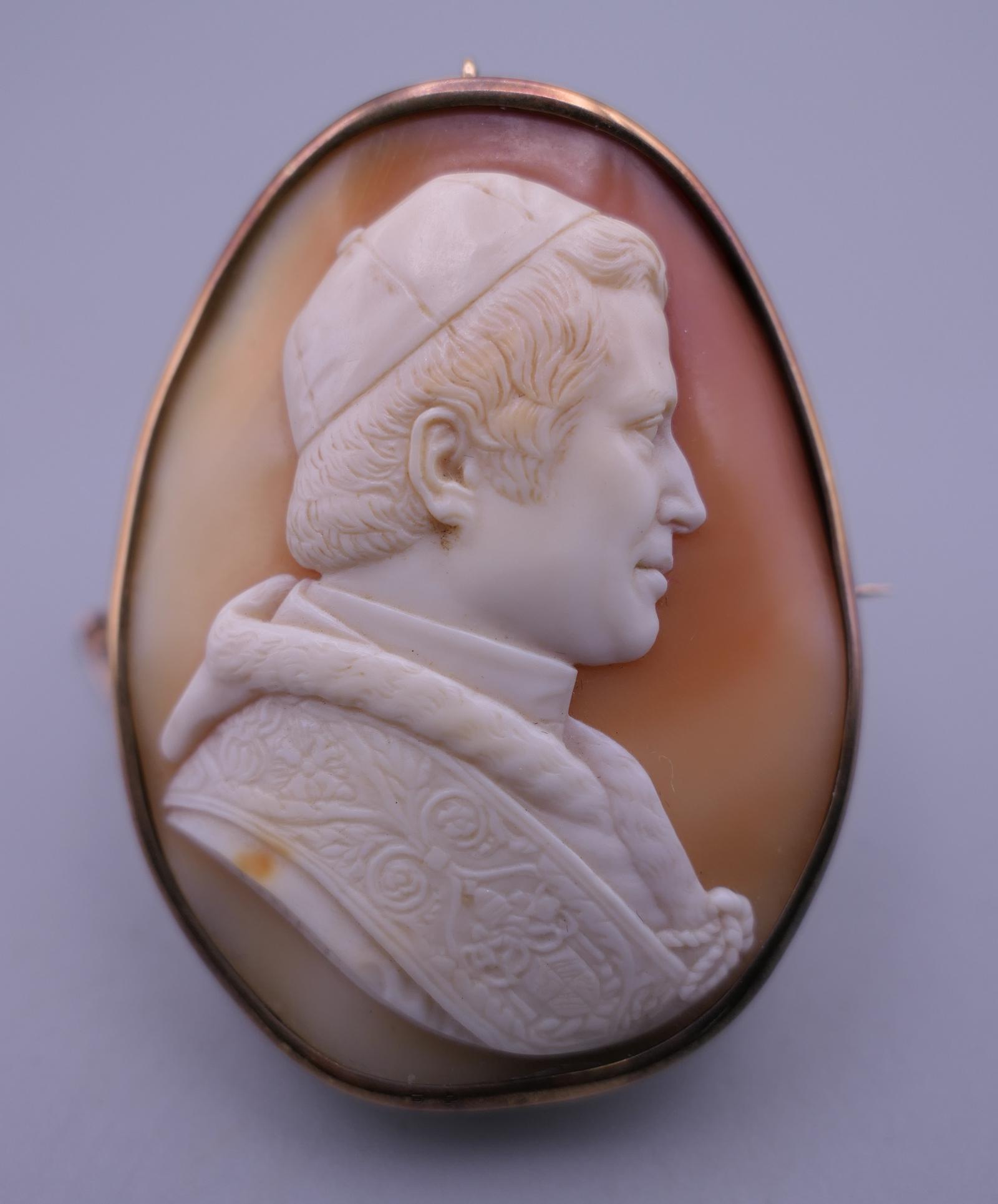 A 19th Century Unmarked Gold Framed Cameo Brooch Carved as Pope Pius IX, Signed Finet