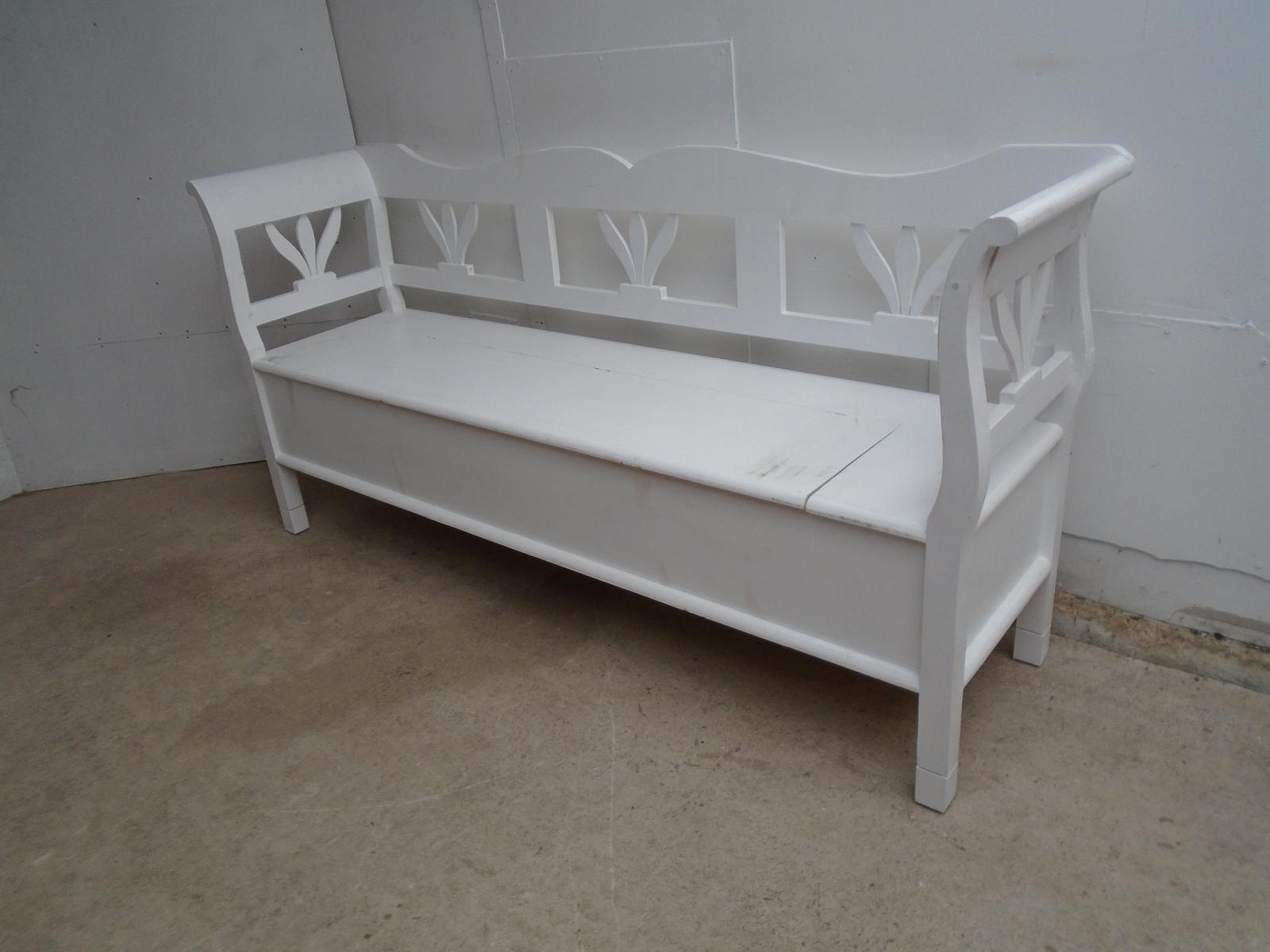 A 2-3 Seater Shabby Chic Tulip Pine Painted White Box Settle / Hall Bench