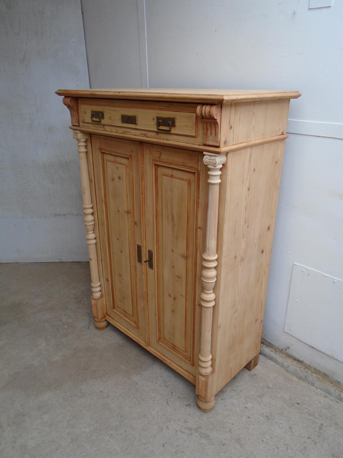A 2 Door 1 Drawer Antique/Old Pine Wide Storage Cupboard to Wax/Paint