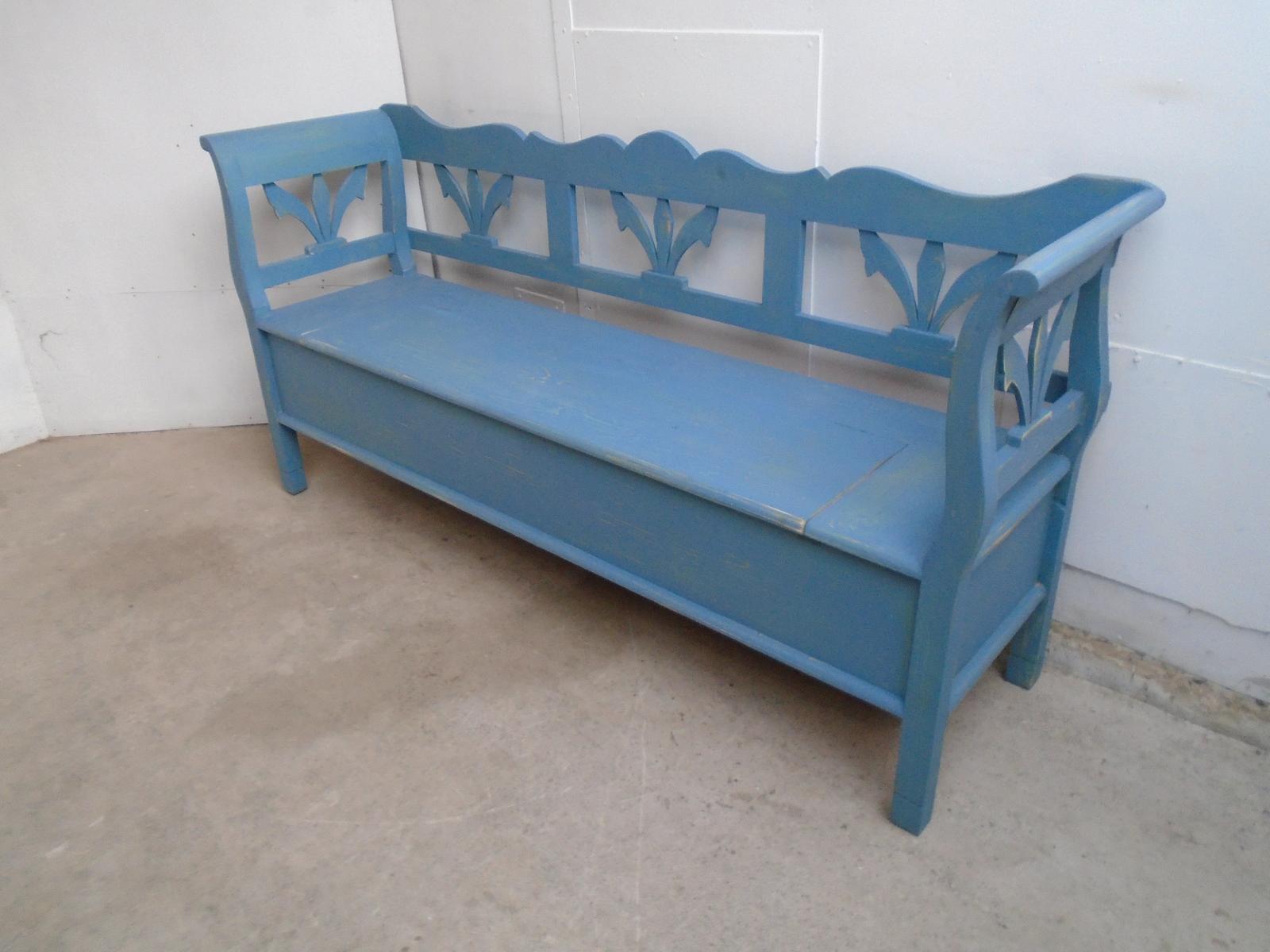 A 3 Seater Shabby Chic Pine Painted Blue & Green Box Settle / Hall Bench