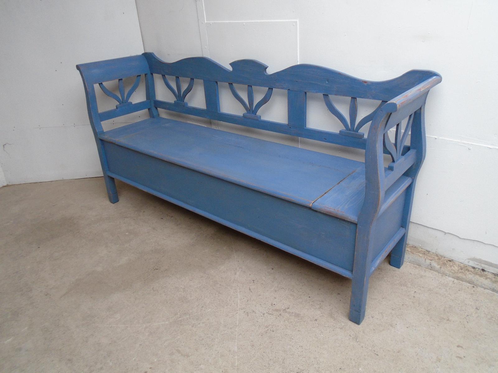 A 3 Seater Shabby Chic Tulip Pine Painted Blue Box Settle / Hall Bench